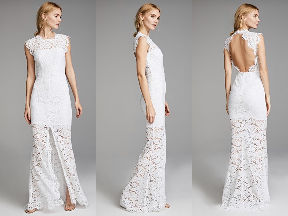 喜愛古典優雅風格的你,那麼這款蕾絲製成的禮服絕對會是你的心頭愛。無修邊的虛線剪裁使禮服顯得格外爛漫,背後的挖空設計和下擺的開衩設計則佐上了柔媚的韻味,和鏤空的緹花蕾絲共同呈現出最完滿的肌膚比例。