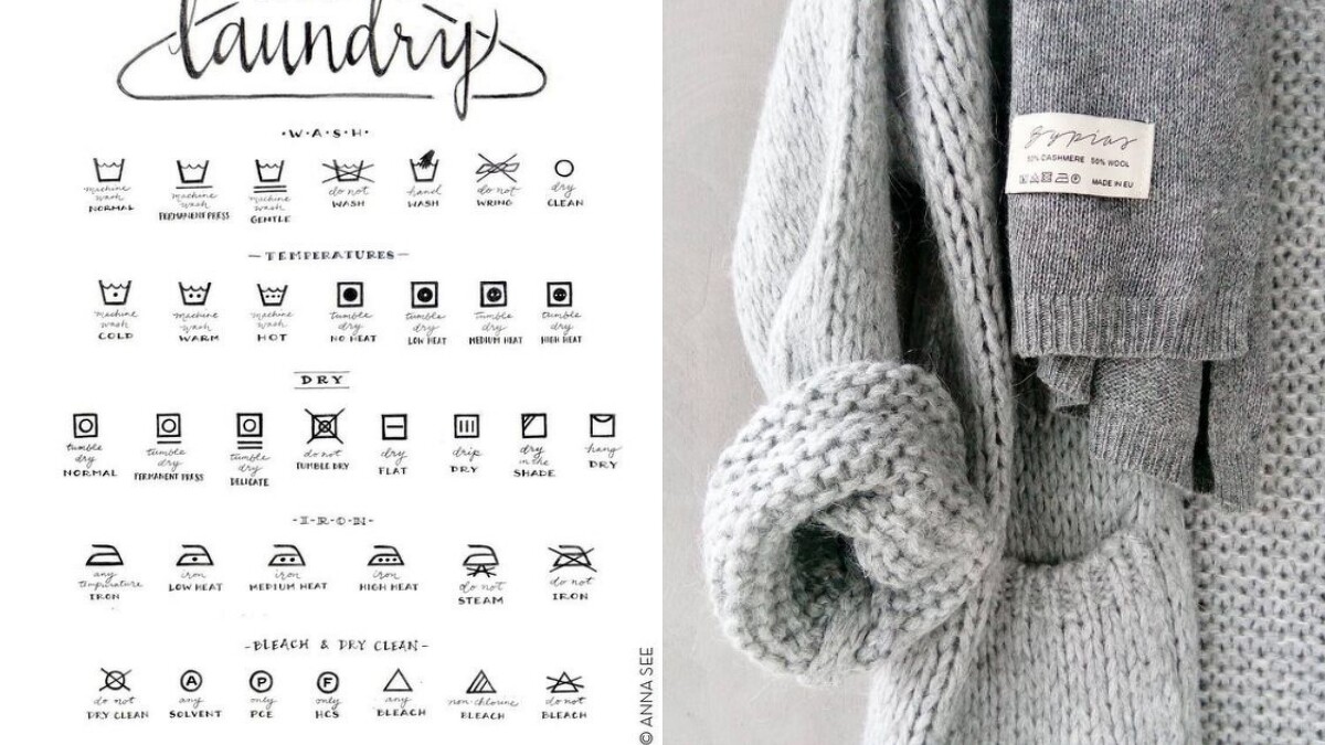 首先在開始洗滌前一定要先查閱衣服上的洗滌標籤,它會告訴你毛衣的料質為何,是否可以放進洗衣機、手洗…到可否烘乾等均清楚地標示在標籤上,所以絕對別忽略這個重要的步驟。