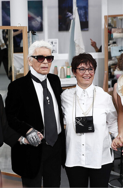 說起Virginie Viard,可能你對她還很陌生,但在業界她被稱作「卡爾的左右手」,這位香奈兒工作室的年輕創意總監,其實和卡爾已經工作超過三十年的時間,1987年時以實習生的身份加入香奈兒工坊,其後在卡爾當家的Chloé時期也曾為他效命,目前她負責香奈兒的高級時裝、早春、工坊及高級訂製等八個系列。她的工作主要是「實現」卡爾的設計草圖,內容包括協調所有團隊,和布料、五金等供應商聯繫,當然,也包括了最重要的Fitting(試衣),要知道,以一年生產八個系列的規模來說,同時間處理不同季別的服裝是再正常不過的狀態,每天都會有不同的服裝送到工作室來。「我每天都在試衣,也每天都在為發表會做造型。」