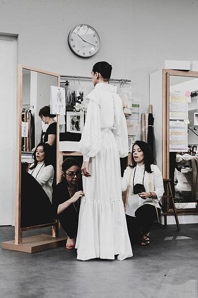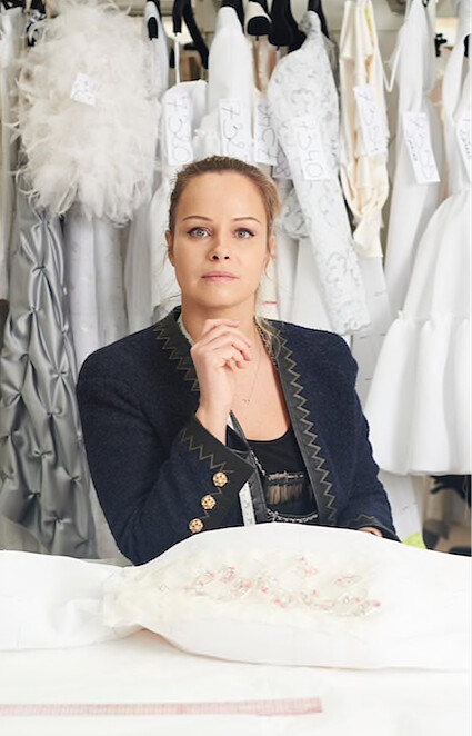 今年35歲的Olivia Douchez,15歲時開始接受專業的裁縫訓練,曾在Givenchy工作超過十年的經歷;3年前,Olivia被專業獵人頭公司找上,經過一連串的面試,最終由卡爾親自面試決定是否錄用。「那是我人生中最瘋狂、壓力最大的一天」她說。目前Olivia擔任裙裝工作室首席裁縫,而裙裝工作室負責薄紗、雪紡等輕盈的布料。