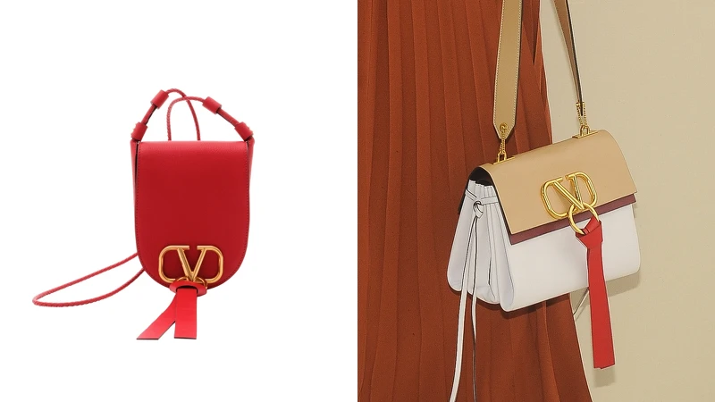 V,這個隱喻著享樂主義、樂天開朗和生活情趣三大要素的字母,如今再次蛻變,換上復古感的古董黃銅飾面,搭載上皮革裝飾繫帶,為設計佐上東方質感韻味。款式上有著小巧精美的馬鞍包、雙色拼接的肩背包、還有大容量的托特包,不論何種款式均能滿足平日造型需求,無疑是一款時尚與貴氣感兼具的必備包!女神朴信惠在今年三月出席Valentino 19秋冬時裝秀時就是手拿這款包包喔!(售價:紅色馬鞍包NT48,800、中尺寸NT88,000)
