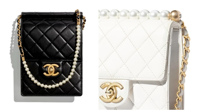 此外,一系列加入珍珠點綴的經典菱格紋包也是本季值得入手的款式。一顆顆散發著內斂光澤的象牙白珍珠,與金屬細節的搭配組合替包身佐上無限的高雅氣質,同時也襯托出迷人的復古韻味。尺寸上的選擇分別有18.5 × 13 × 4 cm、15 × 15 × 5 cm、16 × 21 × 4 cm三種(NT101,100、NT123,100、NT134,100),無論何款均超美!