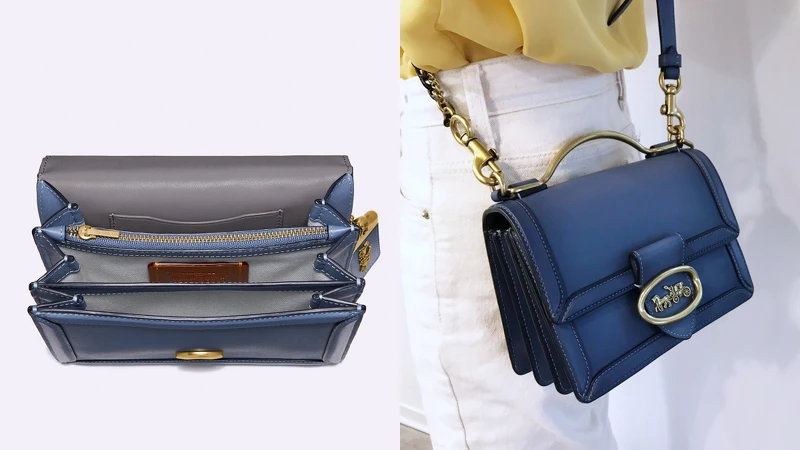 各位小包迷注意啦!Coach今年最新推出的Riley 18 頂部提把手袋你絕對不能不知!這顆創作靈感源自於1970年最受歡迎的經典款包包,雖然身形嬌小,但內裡多層的收納空間足以裝下手機和補妝用品,此外,外側的風琴設計更為包身佐上可愛氣息。在皮革選材上,品牌採用了由棒球手套鞣製而成的皮革,耐用性滿分!而經典馬車標誌除了裝點在包包開闔處,吊牌上也有同樣的裝飾,無論正面看或側邊看都可見到這亮眼的點綴。值得注意的還有提把處上的精緻Coach刻字與可拆卸式的經典環鍊鏈條,處處細節設計可說是復古又超討人喜愛!(售價NT21,800)