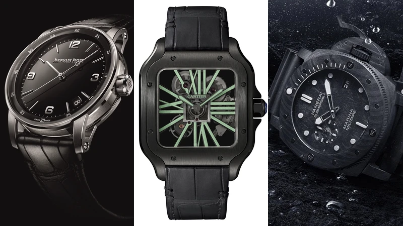 看似 hard-core 難以入心的機械手錶,以全黑配色加乘設計細節,展現出令人驚喜也討喜的時髦風格,讓你/妳的帥氣有更多發揮空間。Cartier 卡地亞為經典的 Santos系列推出 Squelette Noctambule 鏤空錶,機械零件、漆黑錶殼、錶帶…在實用與酷炫兼具的 ADLC塗層夜光顯示羅馬數字時標的襯托下更加顯眼。IWC 自行研發的新材質 Ceratanium® 瓷化鈦金屬,首度應用於飛行員腕錶之中,並透過全新 Top Gun海軍空戰部隊系列呈現;腕錶結合了鈦金屬和陶瓷的優點—質輕、堅固、堅硬、抗刮,「顏值」水準也極高,完全不需要鍍膜處理,所有組件包括按鈕與錶扣等自然呈現霧黑。以運動潛水風格為核心,Panerai 沛納海今年以 Submersible 系列為唯一主打,從 Luminor 1950系列中獨立出來的 Submersible,以永續環保材質、色彩突顯設計細節、同款42或47mm兩種尺寸選擇等特色攏絡人心。Ulysse Nardin 雅典錶的 Freak X 奇想系列搭載品牌自製的飛行卡羅素條狀機芯(卡羅素是1892年由丹麥籍製錶師 Bahne Bonniksen 所發明的裝置,能抵銷地心引力所引發的走時誤差),沒有錶盤也沒有指針,時間透過圍繞著軸心旋轉的組件來判別,大膽的設計今年更以新材質、新色來詮釋。以 Challenge挑戰、Own 根源、Dare 勇敢、Evolve 進化與象徵午夜前的最後一分鐘來命名,Audemars Piguet 愛彼錶的全新腕錶 Code 11.59 被視為品牌自1972年推出 Royal Oak 皇家橡樹迄今最重要的系列,在SIHH期間引起廣大討論;有人說它拋開占品牌產品線比高達8成、幾乎等同AP的皇家橡樹的設計風格,有人說它是品牌圓形錶殼的代表系列,評價不一,但它確實破除了多年以來的想像舒適圈。而看似平淡的第一眼,其實有許多美好細節,像是多層次的錶殼結構,中層為八角造型,錶耳也以鏤空的方式與錶殼相連,而特別研發的雙重圓弧的藍寶石水晶鏡面,在裡側以特殊弧度來塑形,鏡面與隨著角度改變會有不同反射波紋,如此也呼應漆面錶盤的質感;而系列中的日期窗款式,更以剛強外型搭配黑色,帥得有型有款。不打安全牌,也許正是AP能穩占錶市鰲頭的道理。