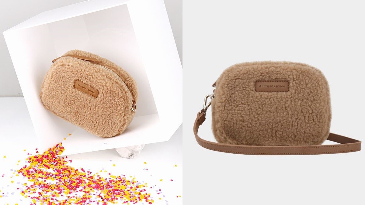 來自韓國的設計師品牌ALICEMARTHA,以簡約的風格擄獲不少女孩的喜愛,在最新的系列中,這款毛絨絨的側背包相當受歡迎,除了奶茶色外,還有深紅色、軍綠色等。