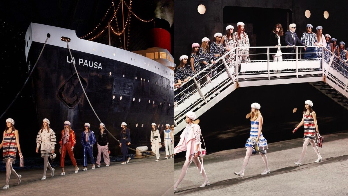 此次度假系列也是掀起超高討論度,原因正是卡爾直接把渡輪開進秀場,讓模特兒一個一個從船上登場,並將此艘船命名為「La Pausa」,那一幕絕對深刻留下看秀的賓客眼中。