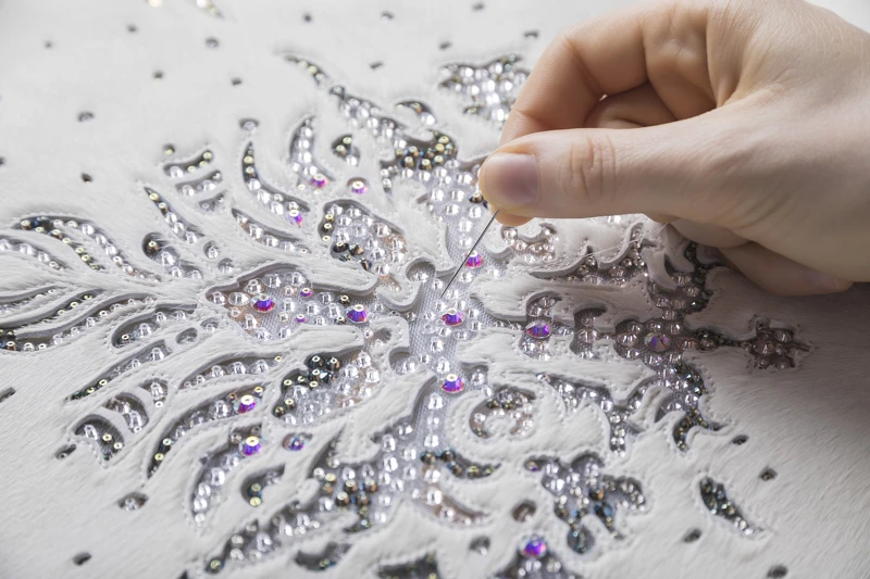 - 以女兒的出生年「青馬年」為設計靈感,運用繁複工序以飾珠在絲滑般的白色小牛皮上勾勒出典雅夢幻、栩栩如生的藍色獨角獸。手提包背面綴有獨角獸獨特的雙翼圖案,為設計注入一絲奇幻氣息,而貂毛製成的提把則象徵著 FENDI 無與倫比的品牌基因與無可比擬的皮草品質。