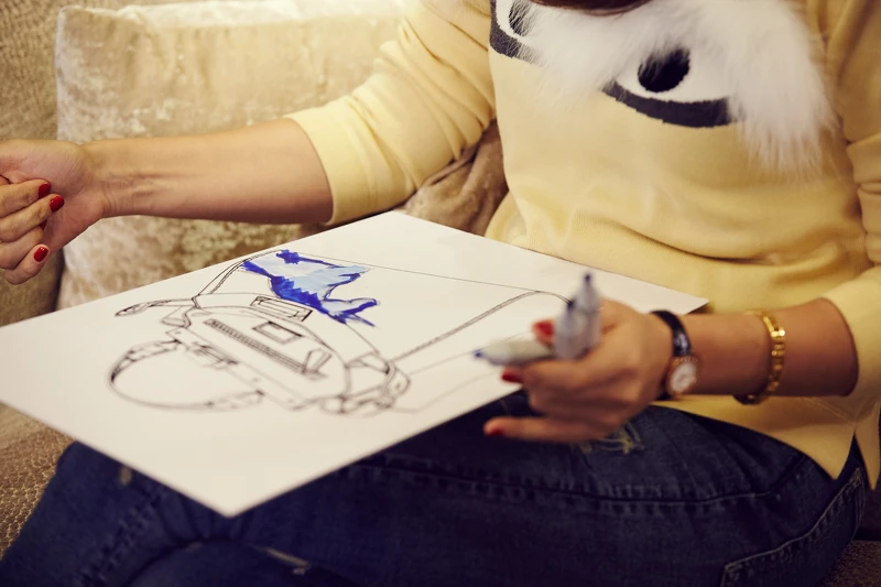 A :我自己平常其實就有在創作,我創作的媒材就是一張紙跟一支筆。我喜歡在白紙上畫滿線條,所以如果我可以設計包,我會畫滿線條。