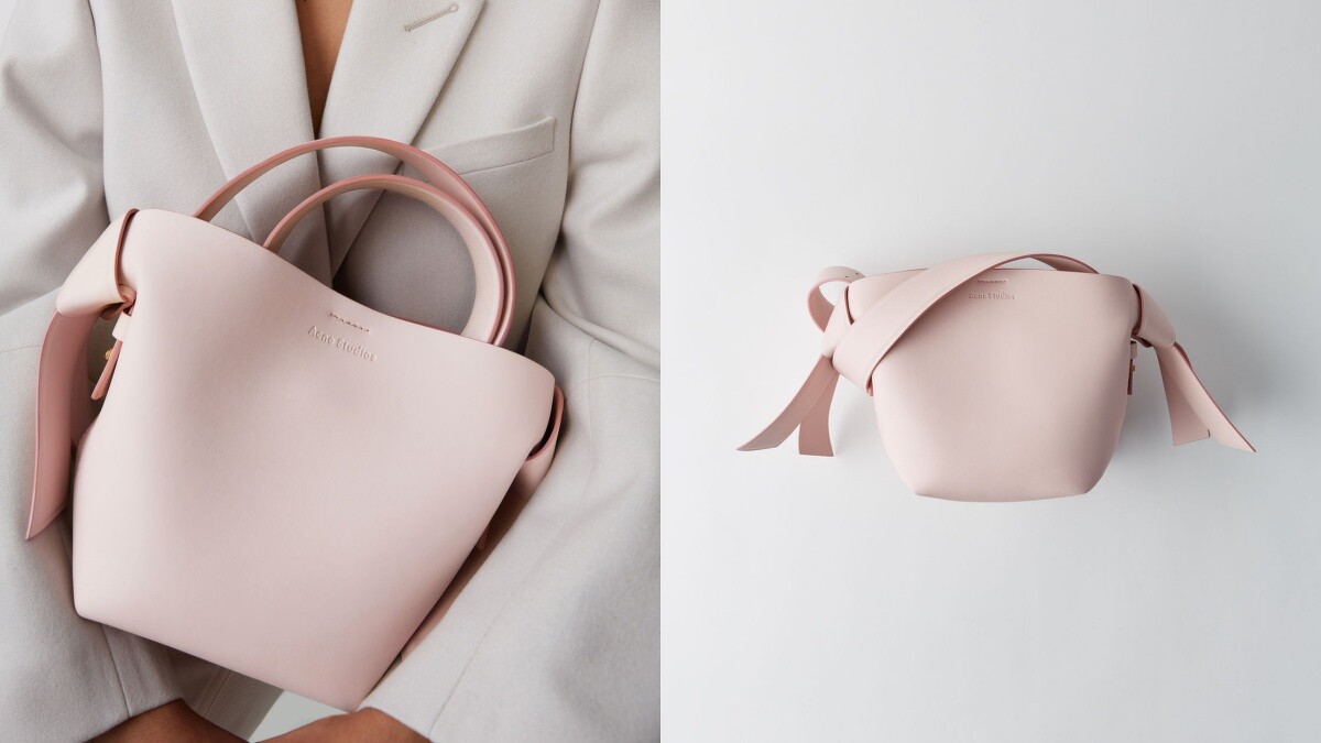 以日本腰帶打結技法作為靈感,推出這款可肩揹的手袋,簡約的設計結合柔嫩的粉色調,絕對是春夏必備的行頭。