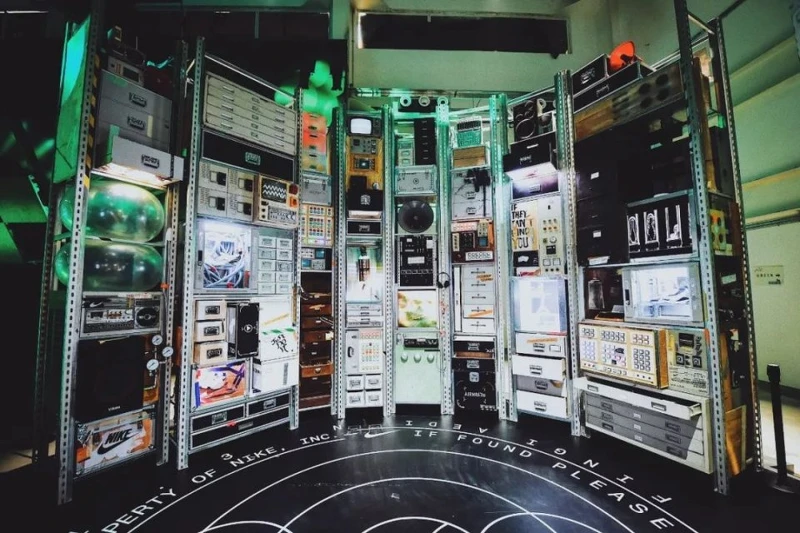 在一年一度 Nike Air Max Day 的這天,《美麗佳人》來到了北京朗園,在進入會場前,編輯們得先換上充滿實驗室感的防塵外衣與鞋套,接著進入一座彷彿大型裝置藝術的檔案室,外露的線材與機械設備,以及一旁顯示器閃爍著 Tinker Hatfield 的影像及設計手稿;