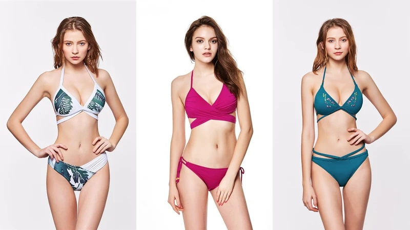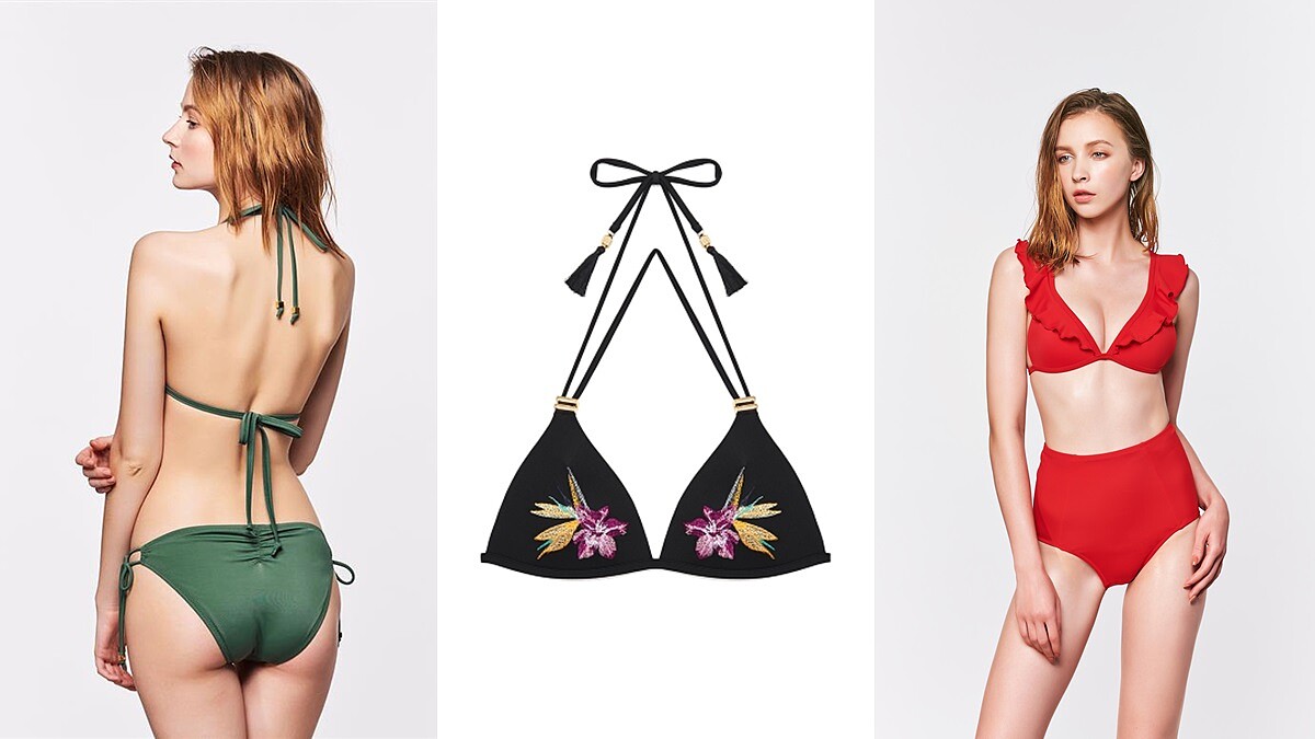 如果已經有了連身比基尼,也對自己的身材略有自信,那基本綁帶款就是下一款必入手的款式。透過不同色系及剪裁設計,可以highlight自己的身材優勢,例如強調胸型的線條設計,也可考慮圖騰繡花款讓胸型看起來更突出,繽紛荷葉設計同樣也有放大的效果。