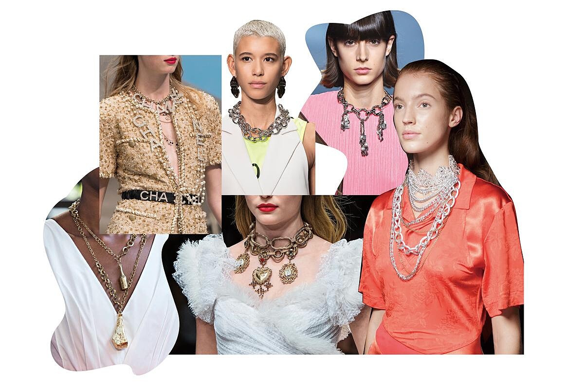 項鍊款式千百種,但今年絕對不能少一條鏈條造型的項鍊!無論是金屬製作,或是任何有趣的素材所製成,反正把鏈條帶脖子上,或長或短、單條或多條層次搭配,都是本季的注目焦點。