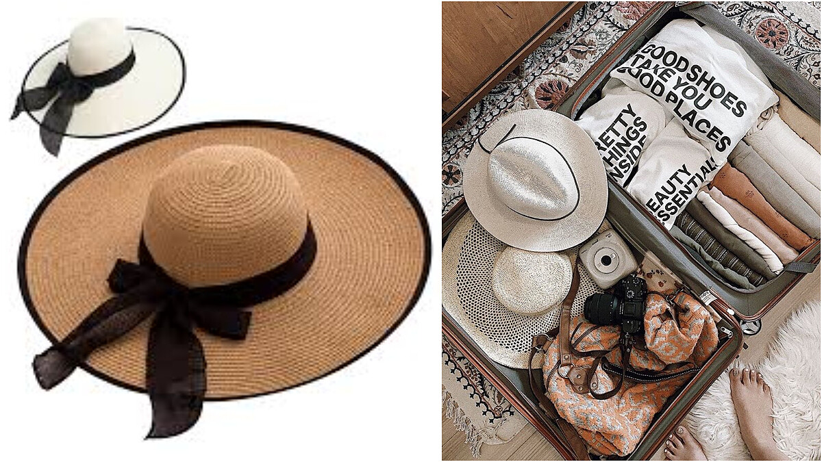 可以將貼身衣物一樣照著口袋摺法摺好,再放進帽子裡,避免帽子因擠壓變形。