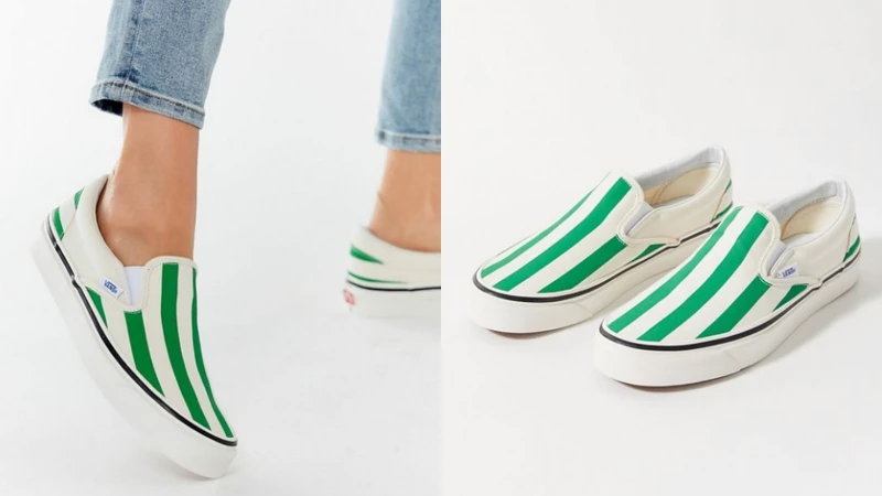 大家應該都知道Vans的素面款抑或經典棋盤格的懶人鞋,但你知道這雙型男型女都在搶的條紋樣式款嗎?後方看來是橫條紋、前方看則呈現直條紋,這雙能將腿部比例拉長的條紋相間款不但色彩搭配清爽且復古,與簡約休閒裝搭配即可輕鬆提升整體的時髦感。(售價約NT2,485)