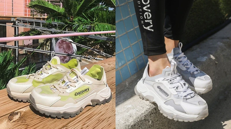 今年春夏,隨著老爹鞋風潮持續不斷,Discovery EXPEDITION也推出一系列不同配色的鞋款,像是象牙白、螢光綠、灰白色等。