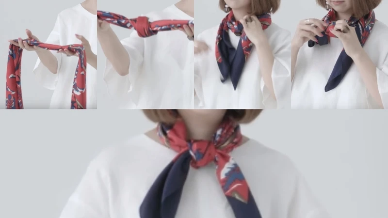 小絲巾的綁法有很多,而這種類似水手、牛仔的小技巧是大家最喜歡的,簡單配上T-Shirt配上紅唇,簡單又亮眼。