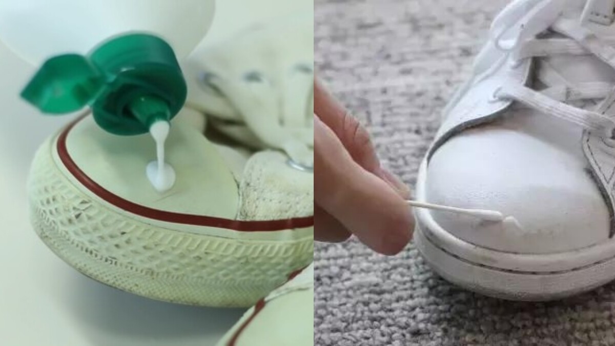 將鞋面浸濕,將牙膏擠在鞋面髒污處,用軟毛牙刷刷至起泡,多重複幾次以上步驟,乾淨的小白鞋就回來了!記得沖洗乾淨之後,要用衛生紙將鞋子包起來,放置通風處陰乾。