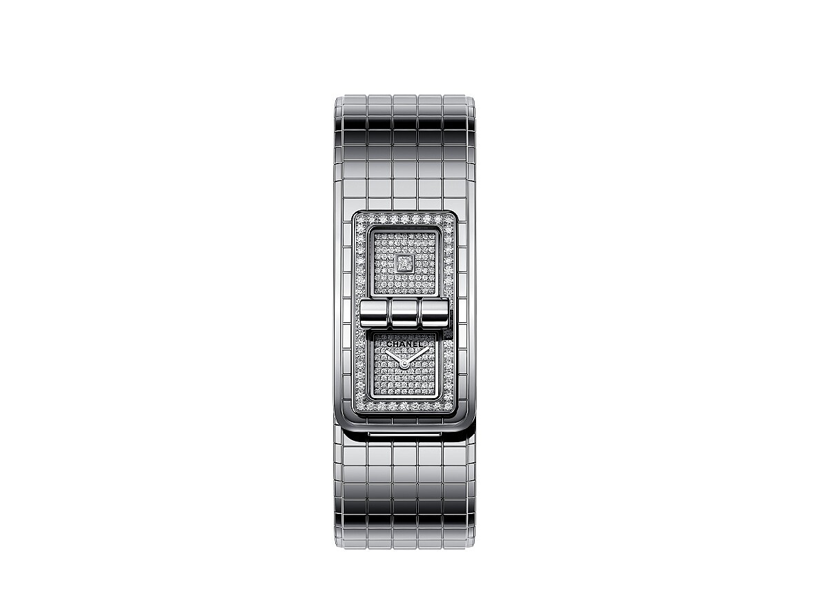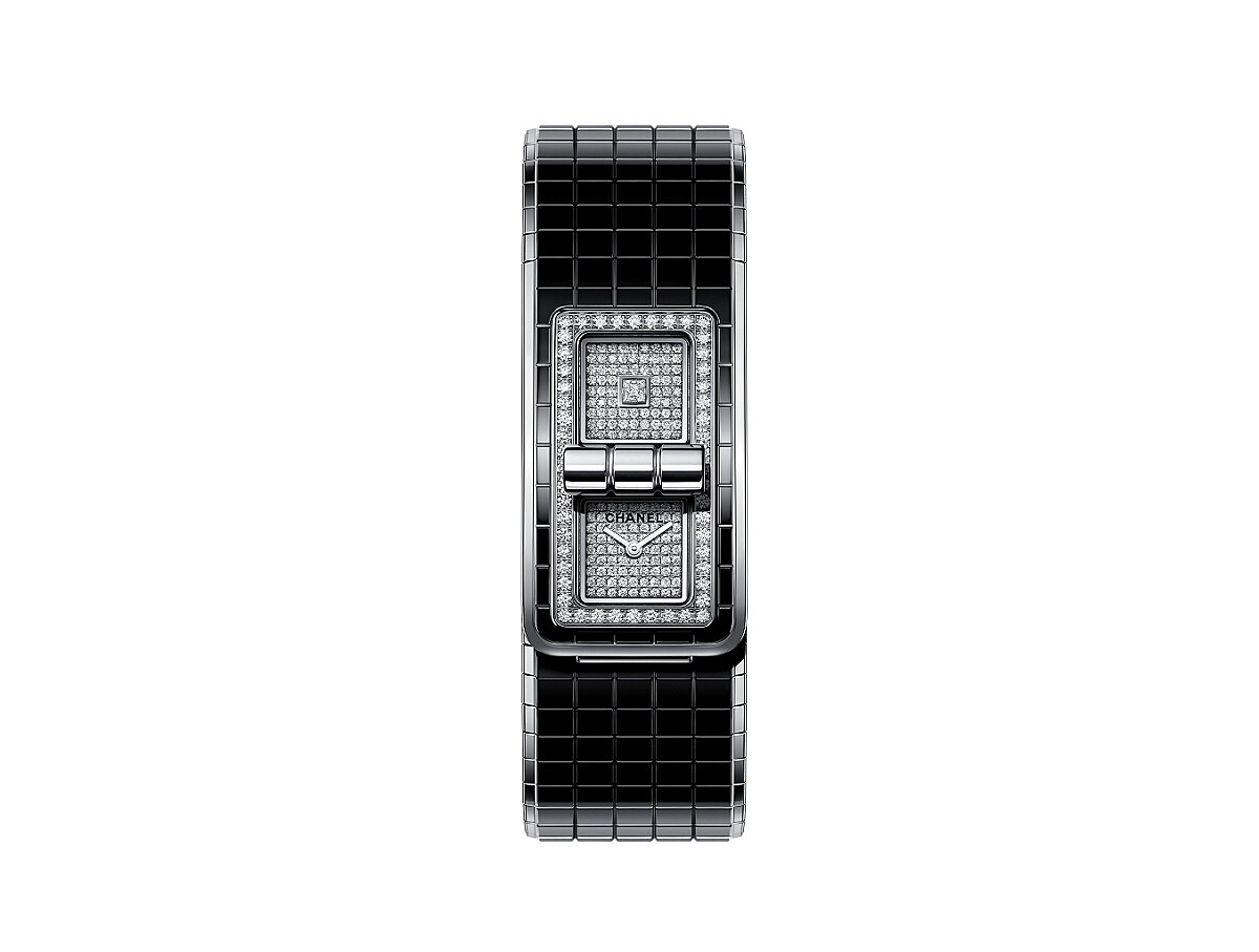「香奈兒的優雅都是源自於一個永恆經典而非浮誇的意念。透過融合這些符碼,我們創造了風格。」鑽石低調地閃耀於黑色的錶盤上,綻放著珍貴的魅力,源自2.55手袋的鎖釦,解鎖時空,Code Coco不只是一隻腕錶更是一隻手鐲,時間為屬於你的私密配飾。