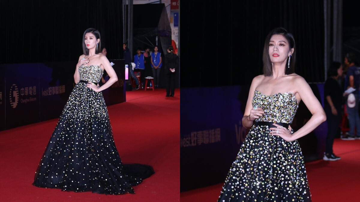 在星光紅毯上,下禮車便以這身黑色碎花禮服驚艷全場,這是來自以色列的高級訂製服品牌Galia Lahav,以抽象表現主義融合莫內印象派主義為靈感,採用黑色性感薄紗材質,再透過手工一針一線縫製上花朵亮片而成,在賈靜雯身上不僅展現優雅個性一面,也讓她的肌膚更顯白皙。