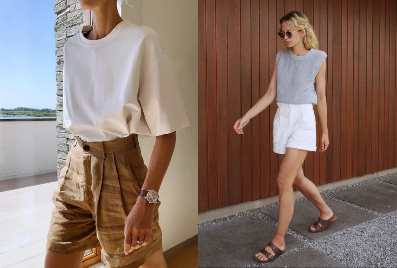 比起超迷你短褲,想要營造北歐的極簡時髦風,那麼高腰+三分長的短褲絕對才是加分關鍵,造型上簡單和素色T-Shirt或背心搭配便時髦有型,同時拉長了視覺上腿部的比例,既苗條又高挑。
