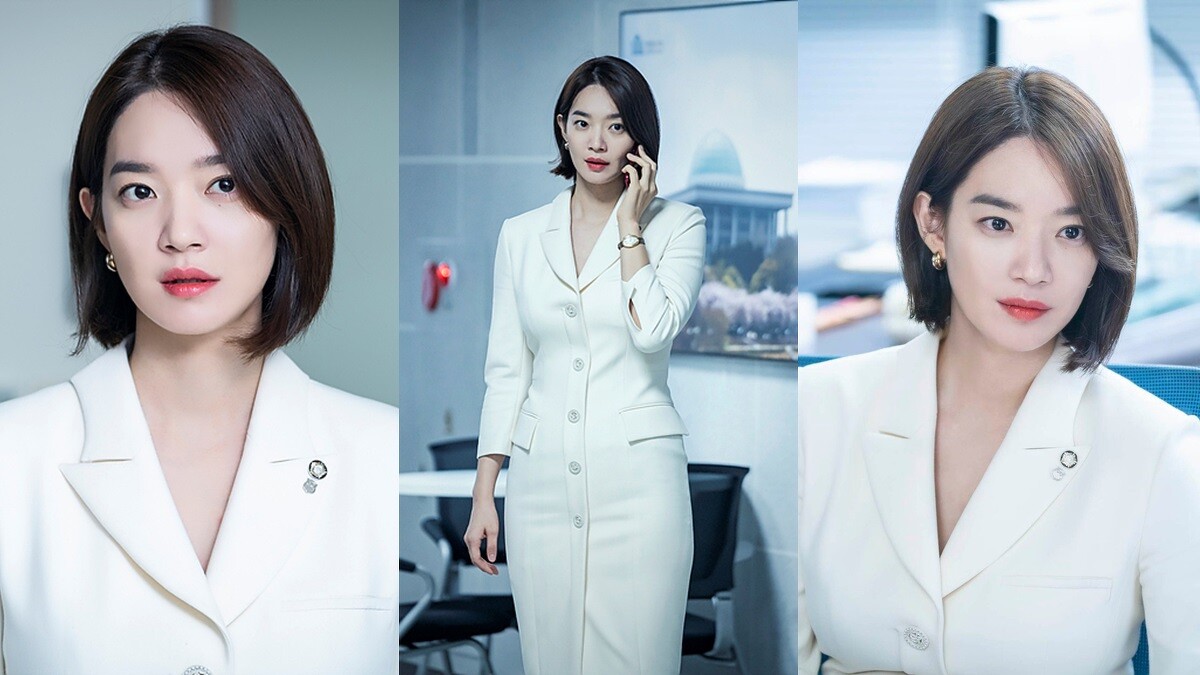 開播至今最令人印象深刻的,就是這套純白色的西裝式洋裝,西裝領的設計展現出國會議員的專業性,貼身的輪廓外觀把申敏兒的角好身段展露無疑,更別說她本人的氣質了。