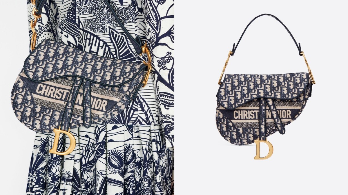 1970年代首度問世的復古印花Oblique圖騰,可是DIOR最經典的標誌,在極簡風盛行的時期消失一時,到了創意總監Maria Grazia Chiuri手中,也就是2017年春季系列中再現,她以Oblique復古斜紋印花設計托特包、馬鞍包、鍊帶包等手袋,更成為近幾年紅透半邊天的IT BAG之一。除了常見的深藍色,Oblique印花也搭上勃根地酒紅色亮相,每一季還會推出不同的包款設計,其中更包含AIRPODS保護套。