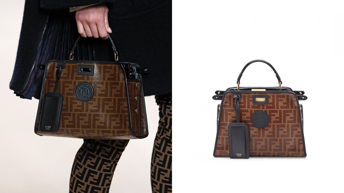 在2009年春夏時裝系列中首次亮相的Peekaboo包款,取自童年回憶的遊戲「躲貓貓」,別出心裁的包口打開垂下,包包內藏有驚喜,就好像躲在手袋中的小貓探出頭來。每季不斷蛻變,以全新配色、材質亮相,2020春夏Fendi再為Peekaboo推出DeFender保護套,設計靈感源自防潑水的雨衣,佈滿Fendi標誌性的FF Logo,結合復古深褐色,分別推出Regular以及Mini兩種尺寸。