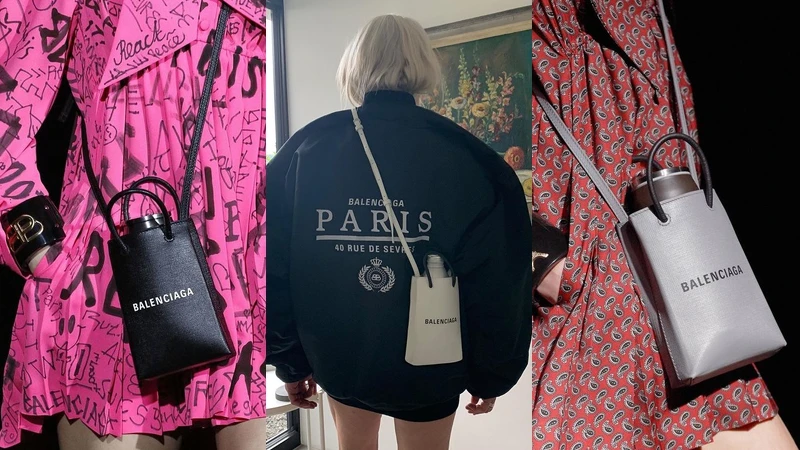 自從在2019秋冬秀上首度亮相後,就話題不斷的手機袋,其實最一開始是以自家購物袋作為設計靈感,搭配可拆卸的肩背帶,當然也能手提,雖然名為 手機袋 ,但其實想裝什麼都可以,畢竟秀上可是裝了水壺進去。