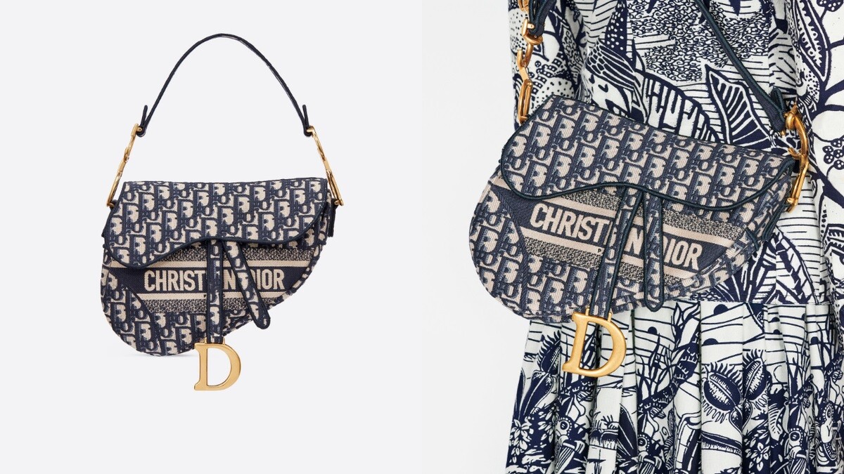 擁有超高人氣的Dior Saddle馬鞍包,2018年強勢回歸後,以藍色Dior Oblique刺繡帆布現身,而這款藍色正是Christian Dior先生一生鍾愛的經典色。把手綴以金屬CD logo及D型馬鐙式磁扣,完全就是向馬術界至上最高敬意!