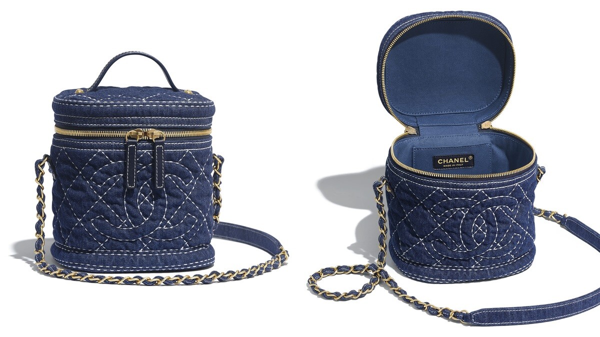 於19/20早春度假系列亮相的圓筒包,造型十分俏皮,丹寧布為包款增添了一股青春洋溢的氣息,適合旅行、度假攜帶。