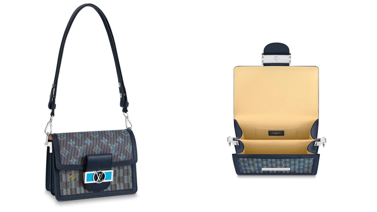 LV的經典包款Dauphine,飾以奪目的電光藍色Monogram印花,復古又時髦的包型配上獨特的LV鎖扣。可拆式的肩帶,可作為手拿包或肩背。