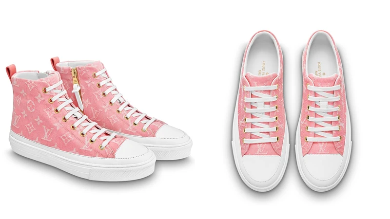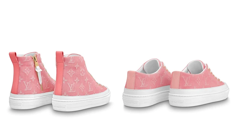 以粉紅色Monogram牛仔布打造而成的Stellar高筒運動鞋,搭配白色鞋帶及白色橡膠鞋底,營造出夏日清新的氛圍,高筒鞋款採用實用的側拉鏈設計,方便穿着,而舒適的符合腳型鞋墊還能拆出晾乾。光看夢幻的粉嫩配色,應該不難知道榮登本年度熱賣品項的原因了。除了高筒款式還推出低筒的選擇。