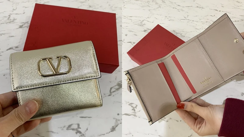 2019年秋冬首度問世的VSLING系列,成為VALENTINO近年熱賣包款之一,扣環上的搶眼的V字Logo也呈現於各種包包、皮件上,本季品牌將V字Logo環扣改以金屬亮面的材質重新詮釋,這之中包含這款小牛皮短夾,恰巧搭上春夏金屬色系,充滿過節的氣氛。內含五格卡片夾層、一格鈔票夾層及拉鍊零錢袋,喜歡BLING BLING元素的女孩務必入手。