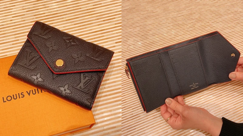 喜歡老花圖騰的女孩,又怎麼能錯過LV推出的Victorine系列,選以柔軟的Monogram Empreinte皮革打造,綴以經典的Monogram壓花圖案,搭上低調深藍色系,而中型短夾的尺寸格外實用,內含多格卡片夾層、鈔票夾,還有額外的拉鍊零錢袋,特別的是皮革採用紅色收邊充滿設計細節。