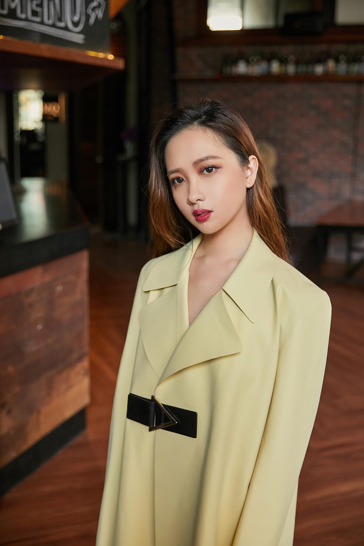 第三套是明亮的暖鵝黃色系大衣外套,非常喜歡它的皮帶扣設計,整體非常簡潔,卻也非常有力。