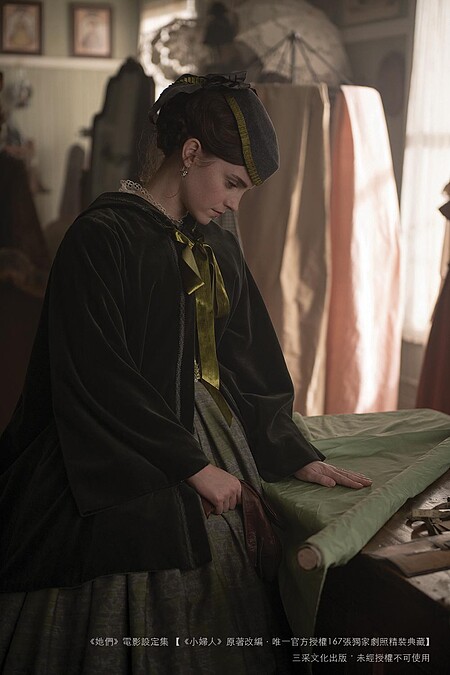 要讓當代風格服飾看起來親民自然,這個任務只有杜倫能達成。杜倫來自倫敦,過去曾設計2005 年電影《傲慢與偏見》的服裝,也曾設計2012 年電影《安娜.卡列尼娜》的服裝而榮獲奧斯卡最佳服裝設計獎。杜倫透過《小婦人》原著小說和編導葛莉塔.潔薇的劇本,找出馬區家四姐妹的性格設定,以此為她們打造戲服。