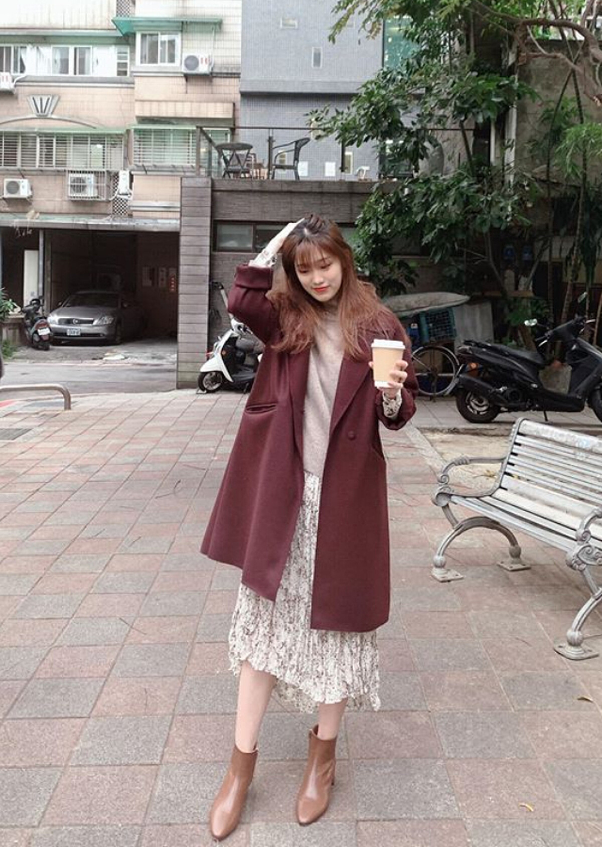 老闆親自前往韓國,每個月固定直飛韓國採貨,冬天必備的長版外套、印花長裙在他們店裡幾乎都找得到,尤其是印花洋裝款式很多,有基本款的碎花也有設計比較特別的剪裁,簡直像走進弘大的小店。也常在臉書用影片的方式介紹商品,讓女孩們可以透過影片看洋裝整體垂墜度跟穿起來的風格。