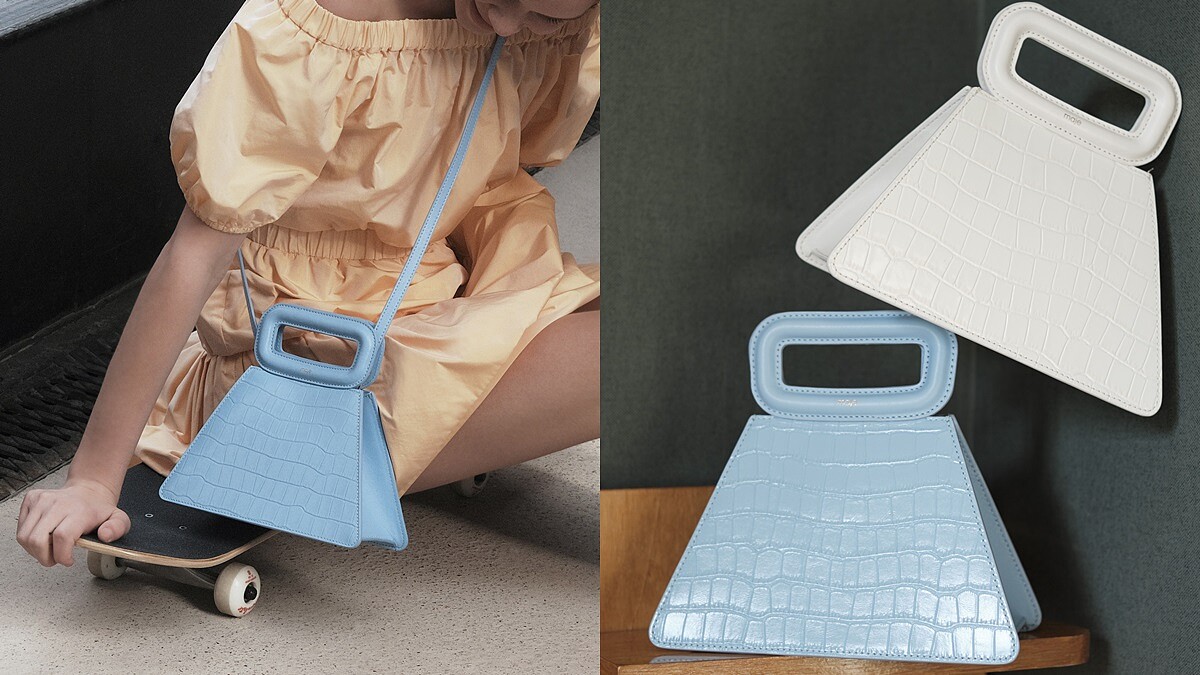 以巴黎羅浮宮作為靈感來源的Maje 2020春夏配件系列,從材料選擇、款式設計到使用功能性,皆與品牌以往的包款大不相同,其中最受關注的A Bag,運用鱷魚紋路的皮革製成,搭配上天空藍、潔淨白、神秘黑等飽和色系,為今年春夏帶來都會時髦氣息,手袋均附上可調節的長揹帶,讓包包不只能手提,還具備側揹的功能。Maje 幾何鱷魚紋皮革包,NT11,360