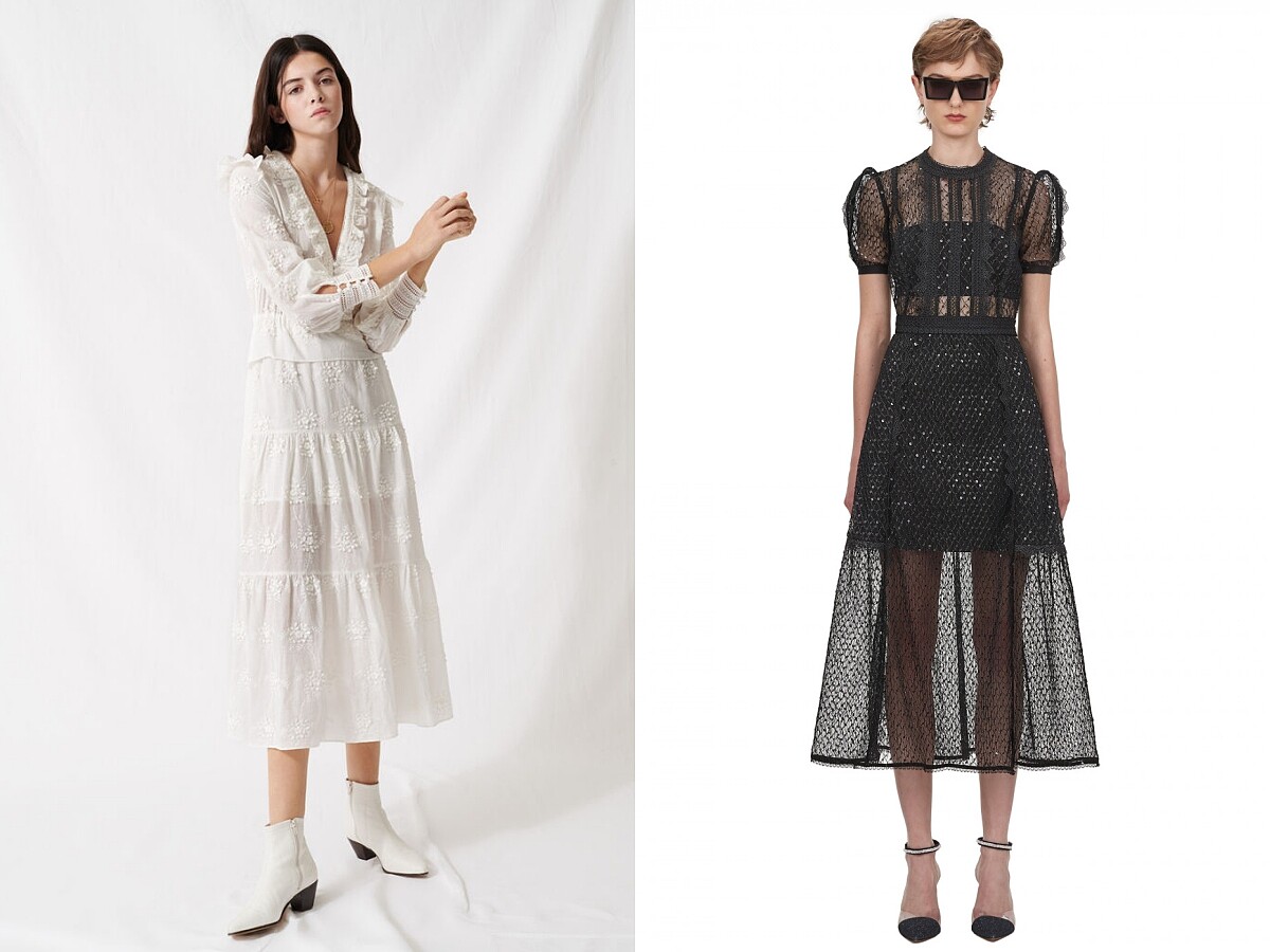 先前出席記者會時,金泰希皆選穿「長洋裝」展現亮麗風格,白色的荷葉邊長洋裝出自法國品牌maje,輕甜的氣息與女神的個性不謀而合;另一套黑色透視長洋裝,出自英國設計師品牌self -portrait,在手臂、中腰、腿部均以若隱若現的薄紗風格視人,些微性感的模樣,也是她個人較少出現的風格。這套她搭配法國精品鞋履Roger Vivier的水鑽方釦鞋,為整體風格畫龍點睛。
