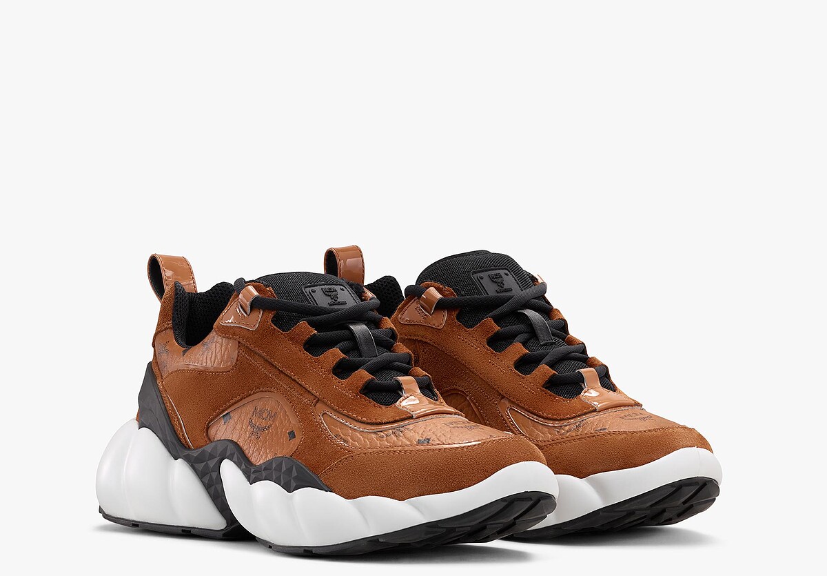 難得推出的老爹鞋行,注入經典的干邑色老花,鞋舌上搭載黑色MCM品牌標籤,配合渦輪旋轉狀的白色鞋底,讓這款老爹鞋有一丁點韓系可愛風格。