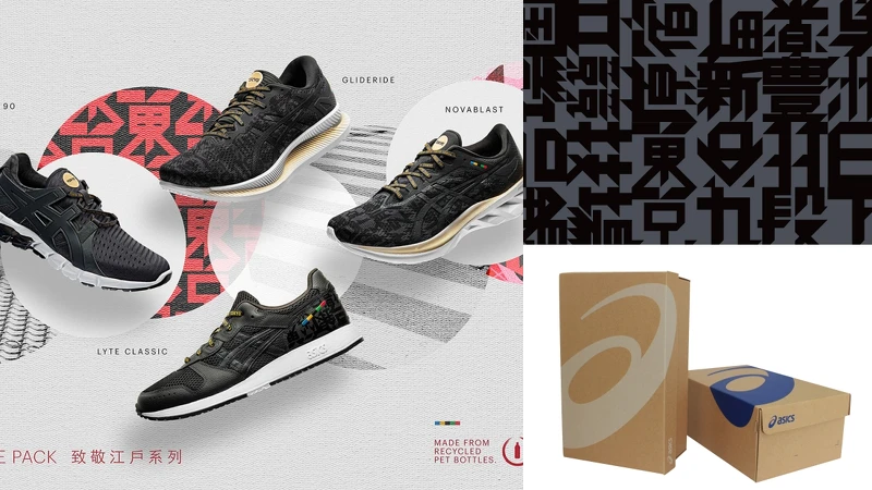 世界地球日50週年,今年適逢奧運年(目前因新冠肺炎延期),Asics(亞瑟士)身為奧運官方贊助品牌,藉此推出的東京奧運倒數系列商品,便以環保為號召,「EDO ERA TRIBUTE致敬江戶系列」鞋款,鞋身以30萬個寶特瓶再生製成!同時,該系列鞋盒皆運用100%回收紙組成,相較過去減少10%耗材,鞋身Logo印花採用水印,與過去相比減少50%油墨使用量。