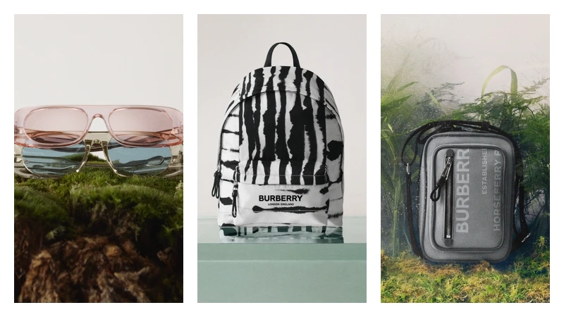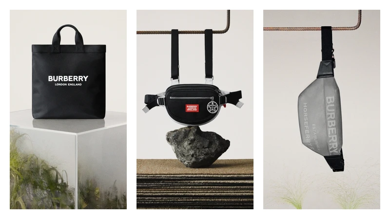 為響應世界地球日,英國百年精品Burberry也與時俱進,2020春夏推出26款用永續材質製造的「ReBurberry Edit」系列服裝,每件單品均附上果綠色的永續標籤,讓顧客跟隨Burberry的腳步,進一步認識以漁網、碎布和工業塑膠再生而成的回收尼龍纖維(ECONYL® 再生紗線)製造的風衣、軍裝大衣與配件等,另也有使用回收塑膠瓶製作的聚酯纖維紗、蓖麻油等可再生製作的尼龍等材質。