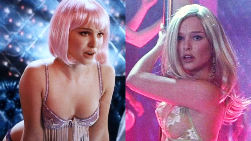 鮮少以性感造型在螢光幕前亮相的Natalie Portman,這回特地穿上火辣的脫衣舞孃裝扮,配上一頭芭比粉和金色假髮,盡顯撫媚韻味。