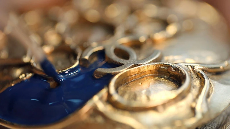 為品牌製作金銀裝飾的 Goossens 工坊是香奈兒女士自1950年便起用的金匠,這些工匠所使用的金屬製程十分類似於貴重珠寶,但以琉璃或水晶取代真正的寶石,