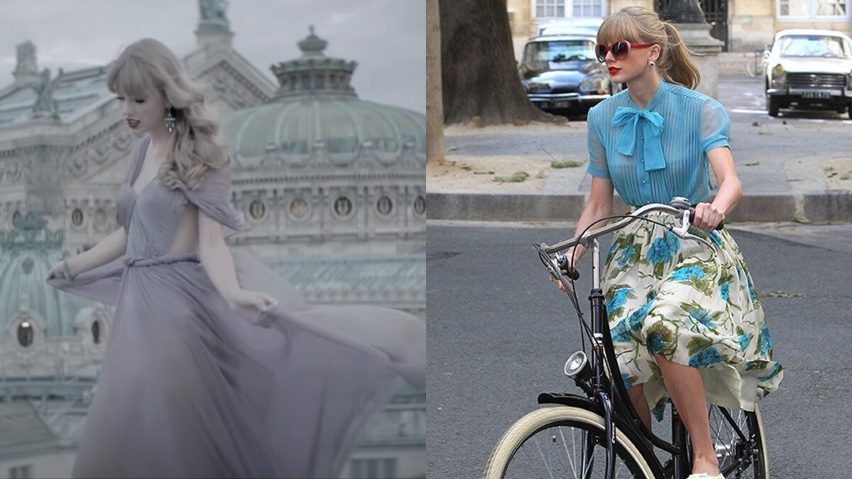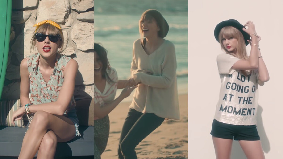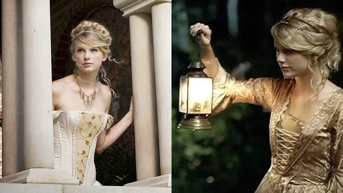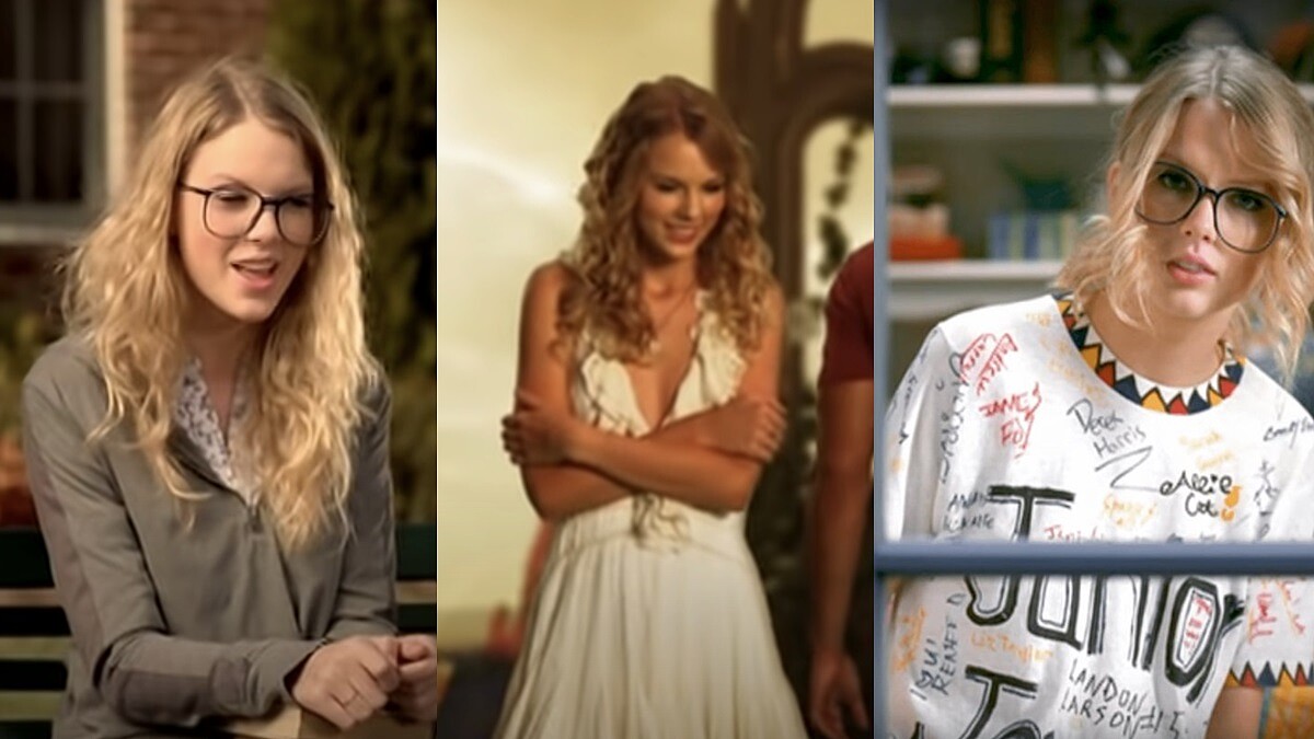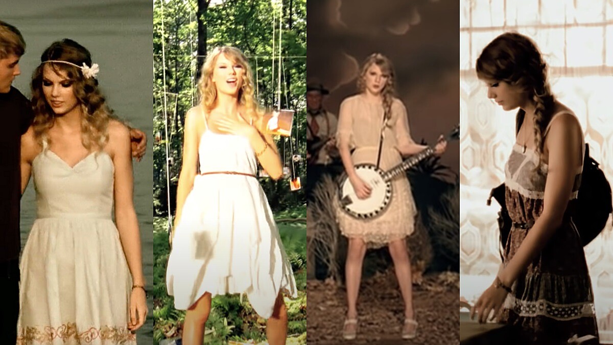 為了突顯清純少女形象,泰勒絲也穿上合乎她年紀的穿搭,像是單調的圓領拉鍊上衣、簽有好友名字的T-Shirt、荷葉邊的小洋裝等,呈現正值青春期的少女樣貌,但同時又散發著女神的氣質。