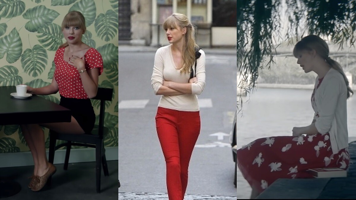 如專輯名《Red》,泰勒絲在造型上也常以紅色服裝亮相,好比紅白斑點紋的圓領T-Shirt、紅色長褲、紅色小洋裝等,將專輯的主軸發揮得淋漓盡致,且看得出泰勒絲逐漸轉型為氣質淑女風。