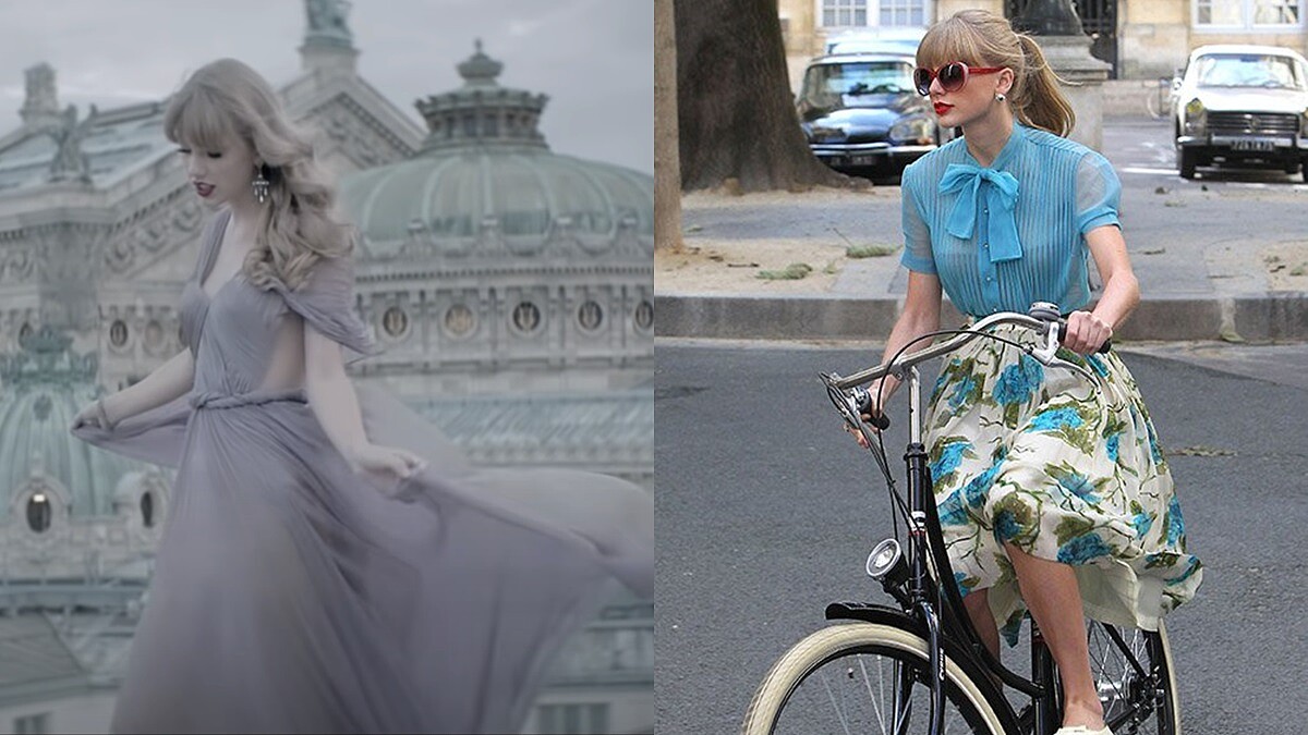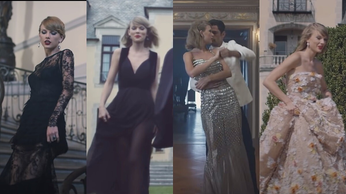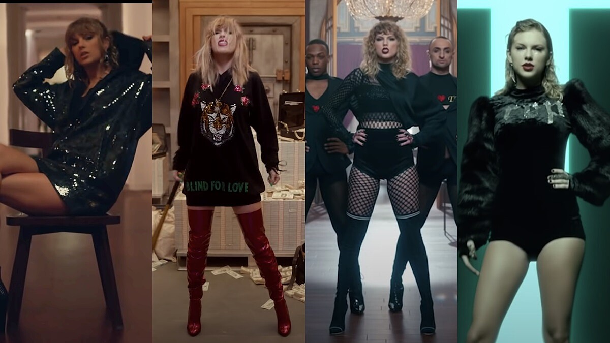 第二支〈Bejeweled〉則風格大轉,借經灰故娘壞心後母與繼姊姊們的場景為開頭。Bejeweled直譯為珠光寶氣,只見MV裡充斥著水鑽、珠寶製成的場景和服裝造型,除了請到好萊塢演員Laura Dern,MV一大高潮還有世界脫衣舞娘第一把交椅Dita Von Teese現身!泰勒斯跟著Dita Von Teese一起演出後者的代表作《Martini Glass Show》—脫絲襪彩帶、輕盈旋轉於巨型馬丁尼杯裡⋯⋯經典動作一個都不少,如此超越情色的表演藝術,真的只有Dita Von Teese才做得到!