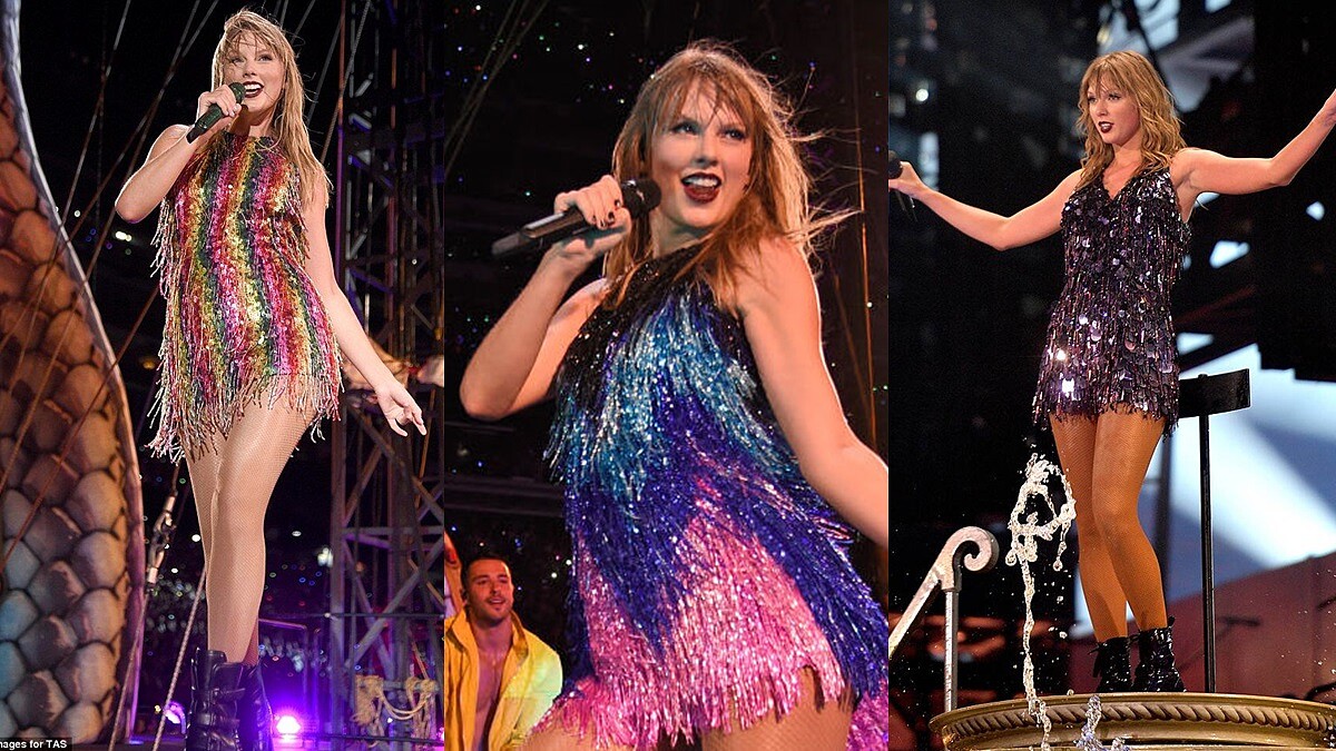 另外,像是彩虹色系的服飾,搭配萬年不變的七彩亮片,將愛的概念發揮到極致,從上ㄧ張專輯的暗黑泰勒絲回歸甜蜜公主風格,將幸福泡泡散播在空氣中。