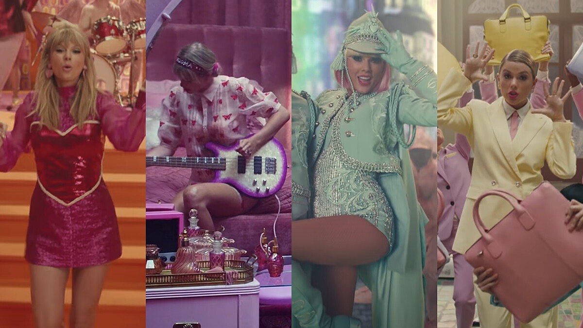 為了彰顯愛的美好,泰勒在造型配色上可是下足了攻夫,多以淡色系的搞怪服裝為選擇,好比粉紅蝴蝶睡衣、淡黃色的西裝、青綠色的騎士裝等,其搞怪的造型彷彿身處愛麗絲夢遊仙境中,格外夢幻,完完全全能感受到泰勒絲對於人生所充滿的正面能量。