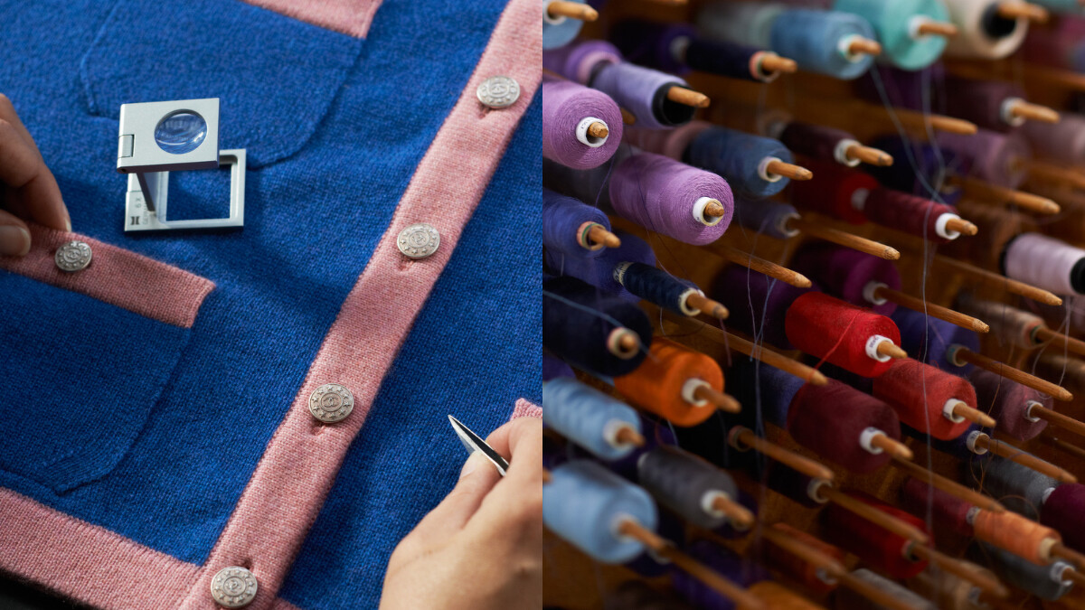 時至今日,Barrie 工坊仍堅持傳統,在超過四十道工序中,仍有許多製程堅持手工。除了選用頂級喀什米爾纖維,不同批紗線須嚴格控管色調及分類,以防混色;組裝及縫合羊毛開襟衫的四個主要裁片也與不同廠間專職分工;接著將織好的衣物以純淨的水洗滌,讓面料手感更細緻,則是蘇格蘭製造的專屬特色。接著再以蒸汽定型後,才能進行剪裁,以精湛的工藝技巧,建構出時裝屋的強韌骨幹。